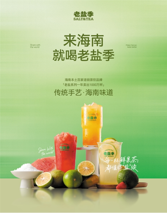 作为深深扎根海南的本土茶饮品牌,老盐季始终以「真老盐、纯鲜果、纯手工」为内核,结合了海南传统茶饮文化融合创新,以海南老盐非遗技艺、热带鲜果与茶文化相结合。从一杯经典老盐柠檬水出发,不断解锁老盐与热带鲜果、本土食材的碰撞可能,打造出一系列独具海岛风情且符合现代健康茶饮消费的特色茶饮。每一款产品,都是老盐季对海南味道的深度诠释,也让「老盐」这一藏于海岛的味觉符号,成为海南风味的鲜明标识。