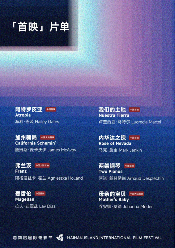 第七届海南岛国际电影节「首映」单元正式官宣!本单元旨在汇集全年影展重磅作品,将全球电影大师的最新力作,与新兴导演的突破创举集中展呈。在这些作品中,既有对叙事张力的极致追求,也有对表达形式的大胆探索。本单元所有影片均首次与内地观众见面,百分百新鲜呈现,在12月3日至12月9日的电影节期间,将新的风景带抵每个人的面前。