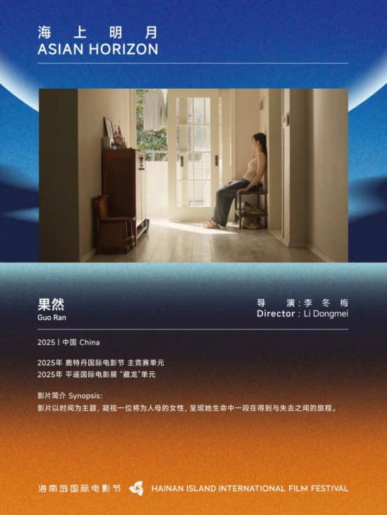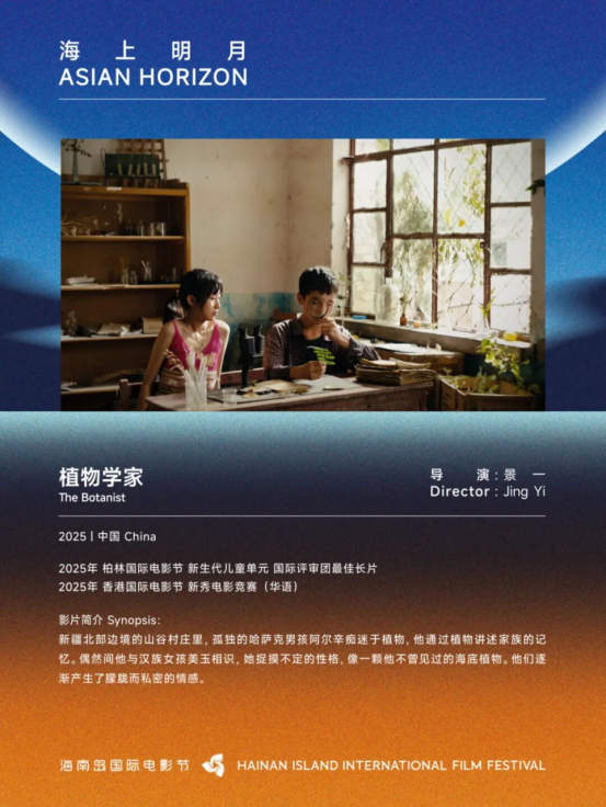 今年是华语电影在国际电影节舞台上大放异彩的一年,「海上明月」也涵盖了走向世界影坛的华语电影新生力量。祝新的《世界日出时》在环球影节展映后终于来到海南,影片延续了他独具作者性的诗性风格,是“杭州新浪潮”的又一代表之作。《梦的拜访》勾勒东北小城中普通人之间的情感涟漪,作为导演王淞可的首作,影片兼收亚洲电影大师的风范,是难得的华语独立之作。导演景一的首作《植物学家》在柏林国际电影节新生代儿童单元获奖,展现新疆北部山谷风光和哈萨克族的生活日常,并以其诗意美学与文化深度获得关注。李冬梅导演在《妈妈和七天的时间》五年之后带来新作《果然》,由李蔓瑄、王一通主演,讲述导演具有自传性的女性故事。《西渡》由潘斌龙与曾美慧孜主演,讲述一个具有神秘色彩的边境故事,影片曾入围洛迦诺国际电影节当代电影人单元。